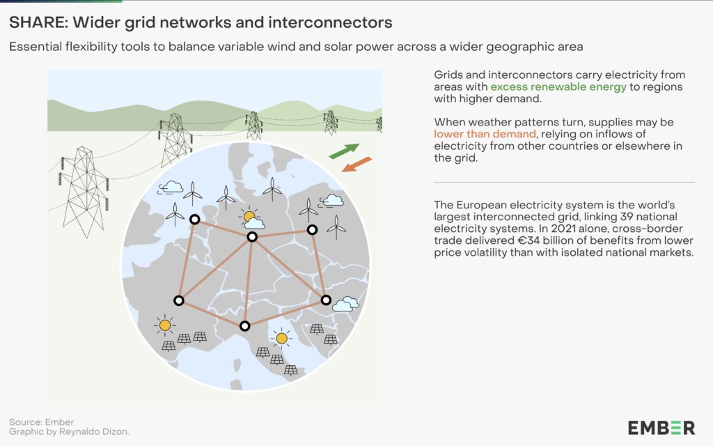 Handel över gränserna gör det möjligt att balansera variationer i produktion och efterfrågan.