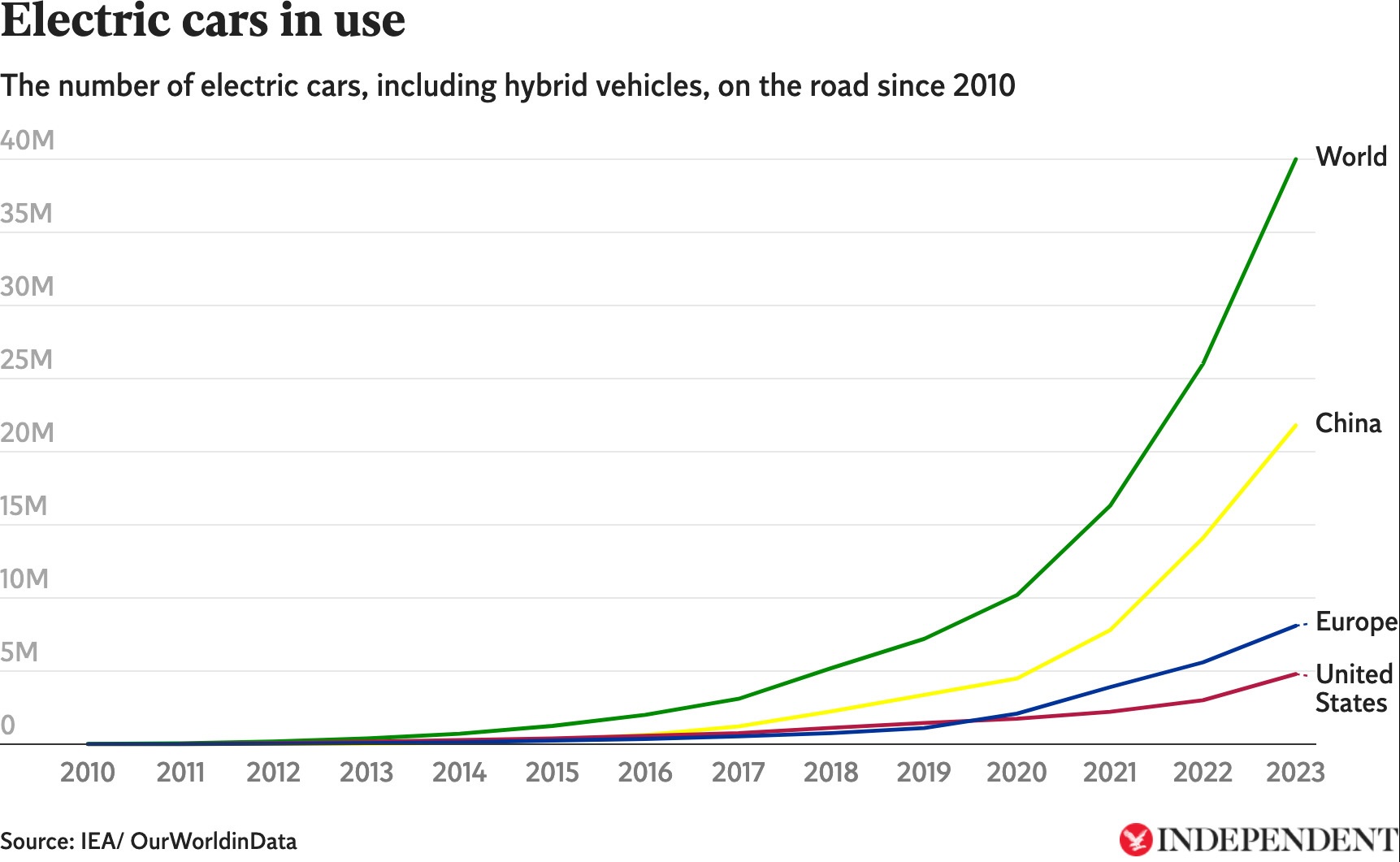 - Kina driver utvecklingen: Kina har blivit världsledande inom elektrifiering av transportsektorn med över 20 miljoner batteridrivna bilar i trafik.