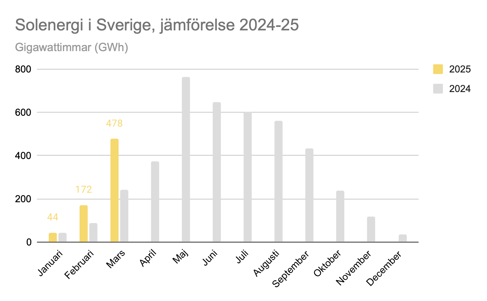 Jämförelse solenergi i Sverige 2024 och 2025