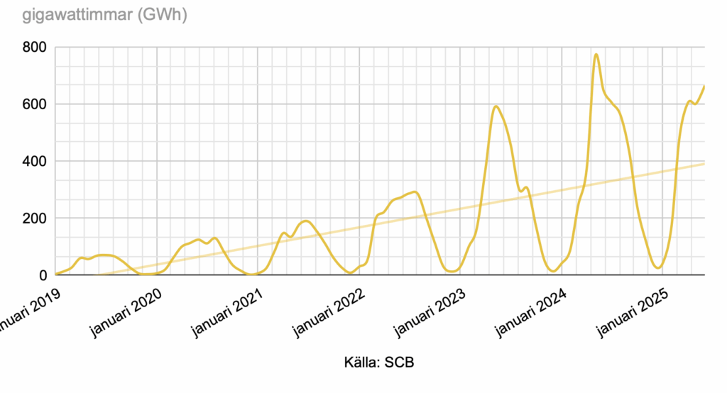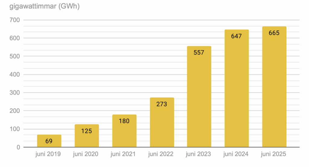Solenergi i Sverige januari 2019 – juni 2025
