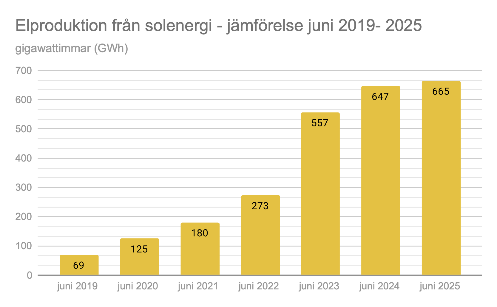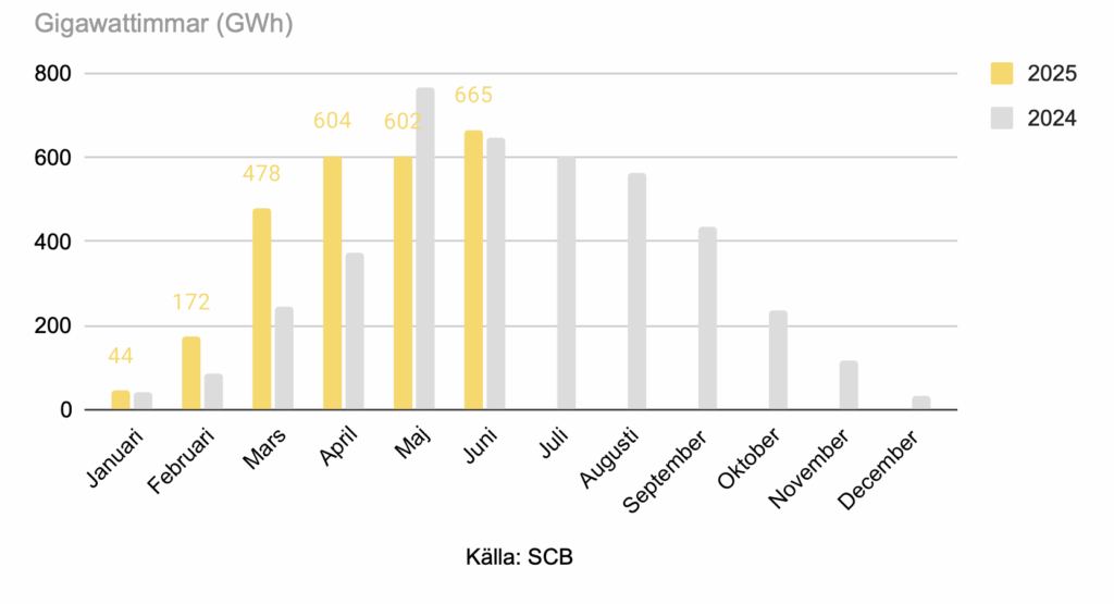Jämförelse solenergi i Sverige juni 2019- 2025