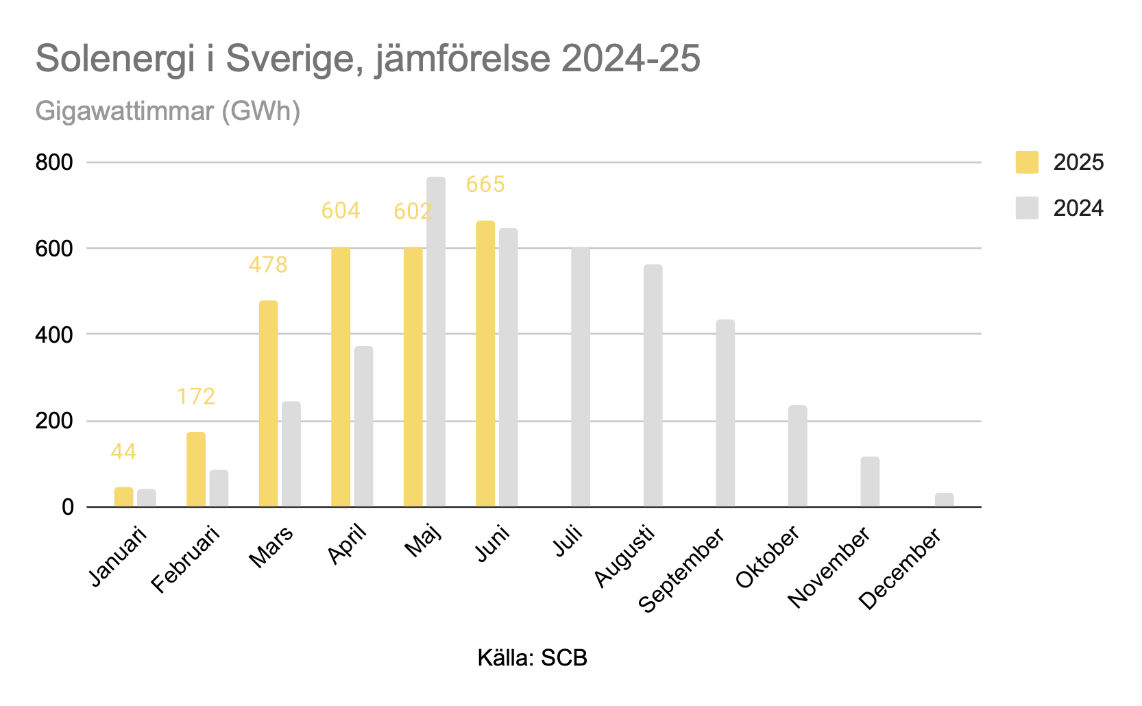 Jämförelse solenergi i Sverige 2024 och 2025
