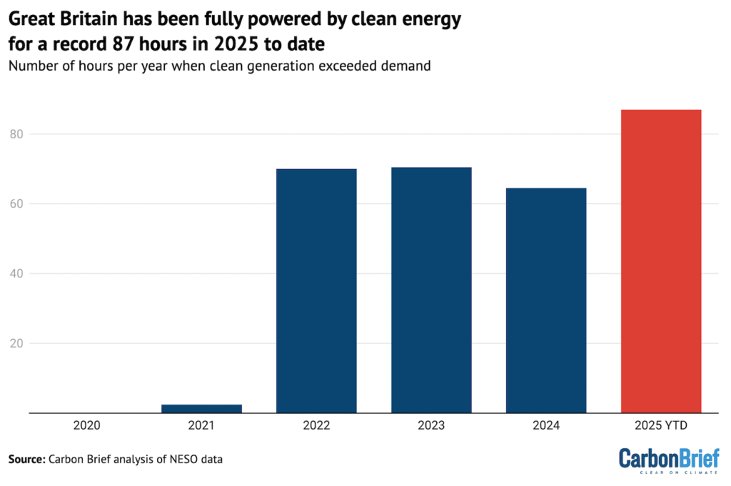 Den längsta sammanhängande perioden var i maj 2025 då landet drevs fossilfritt i 15 timmar.