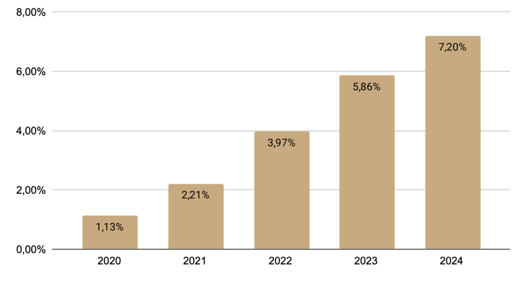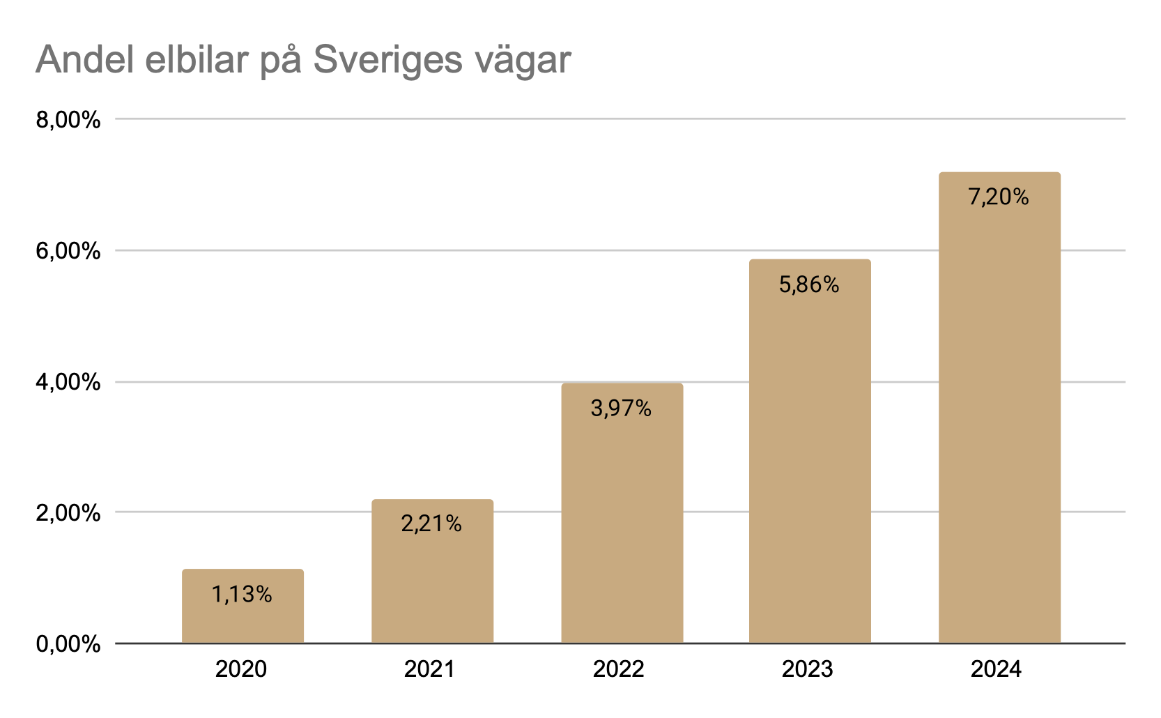 Andel elbilar på Sveriges vägar 2020-2024
