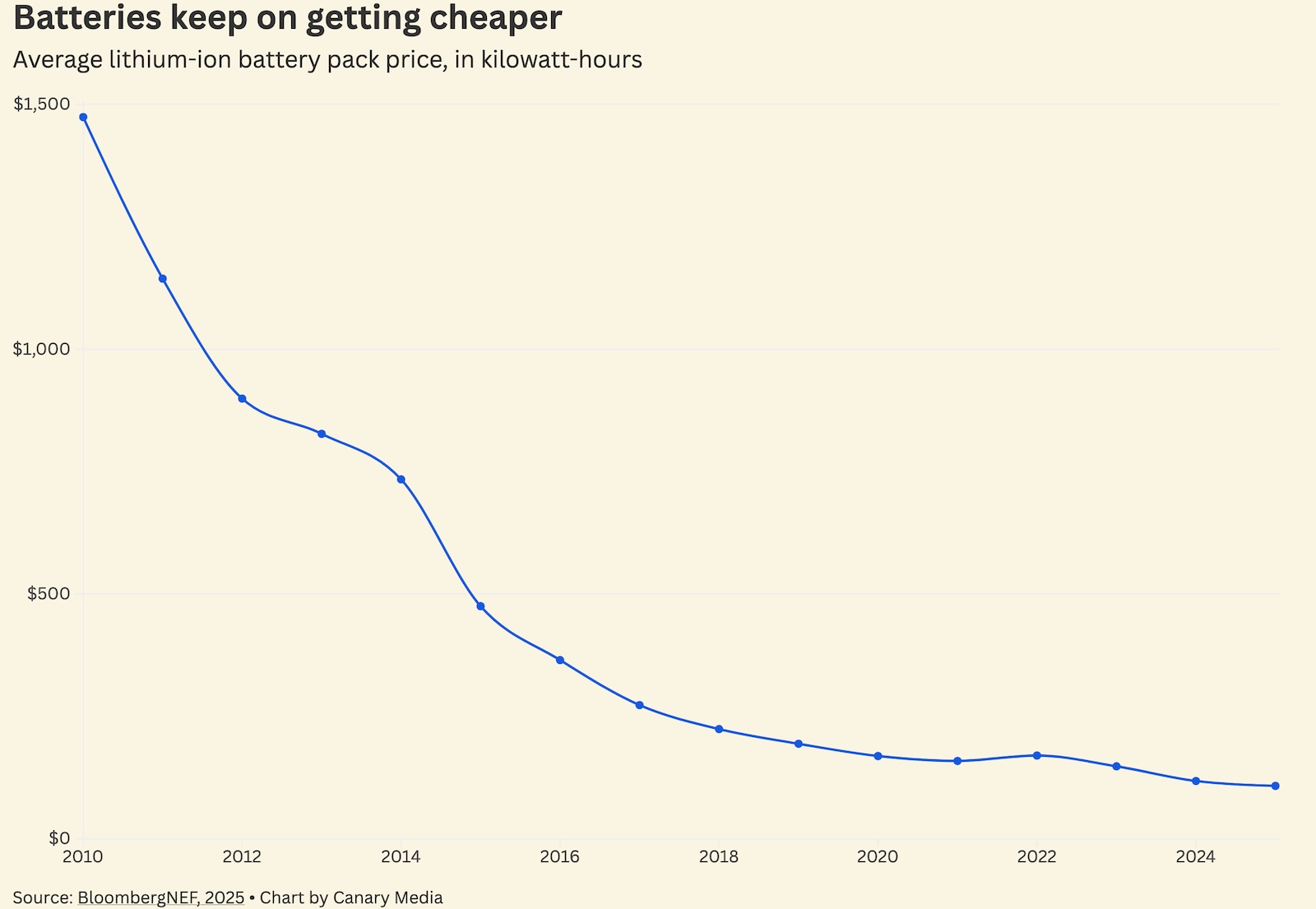 - Canary Media: Surprise — batteries got cheaper again last year