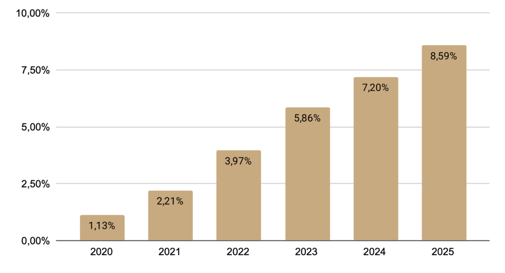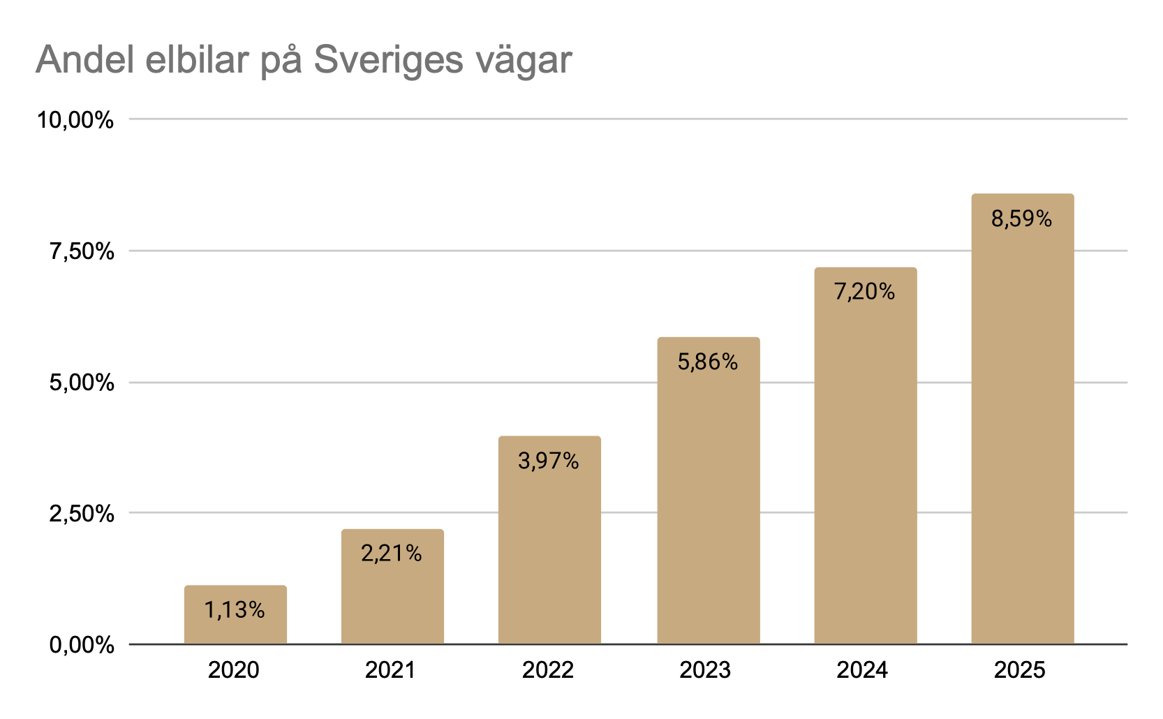 Andel elbilar på Sveriges vägar 2020-2025