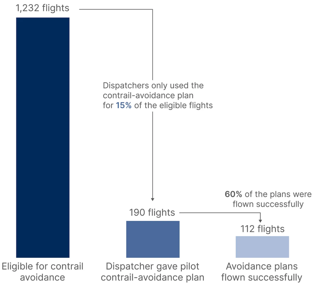 Totalt minskade kondensstrimmorna med 12 procent över hela gruppen – inte för att tekniken brister, utan för att den sällan kom till användning.
