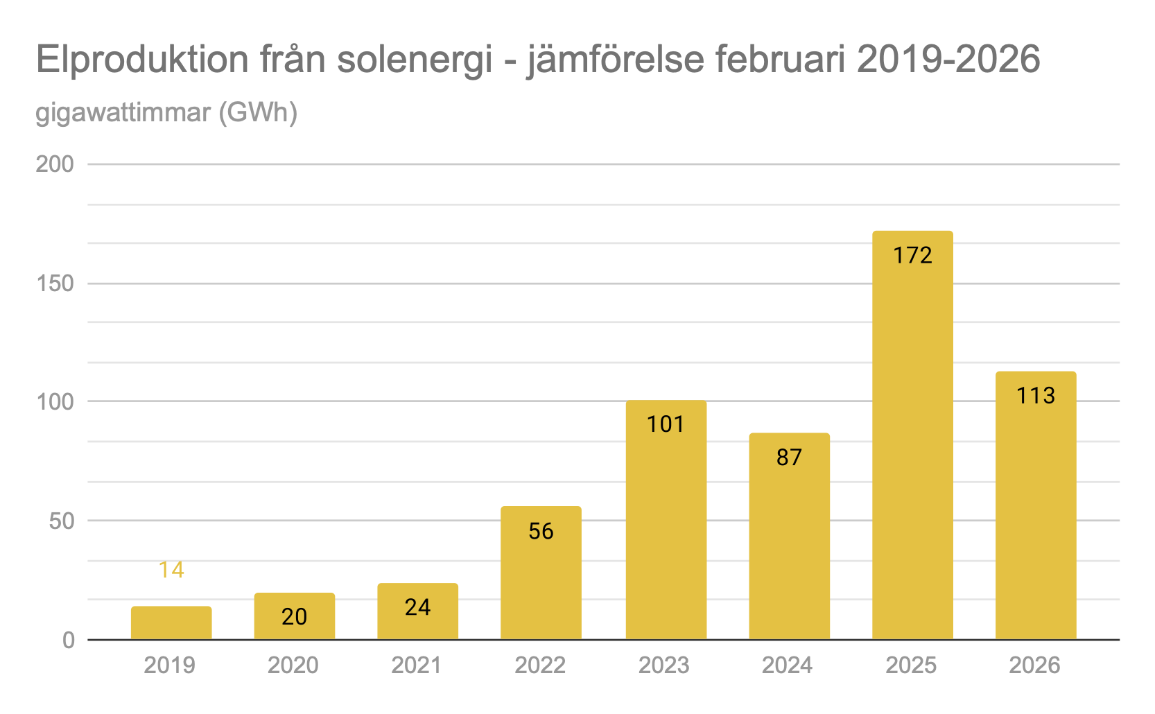 Jämförelse solenergi i Sverige februari 2019- 2026