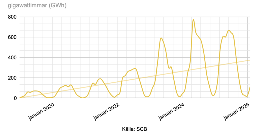 Solenergi i Sverige januari 2019 – februari 2026